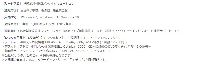 2017/03/15 横河レンタ・リース株式会社より「指紋認証付 PCレンタルソリューション」サービス開始のリリースが発表されました