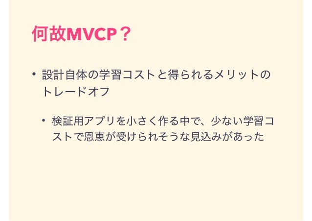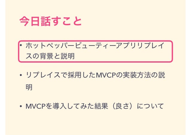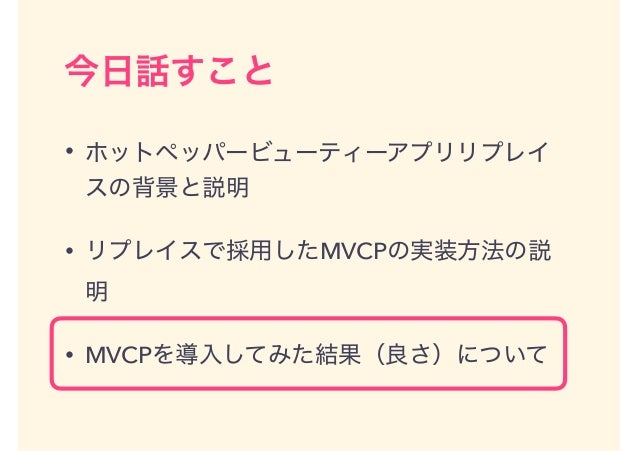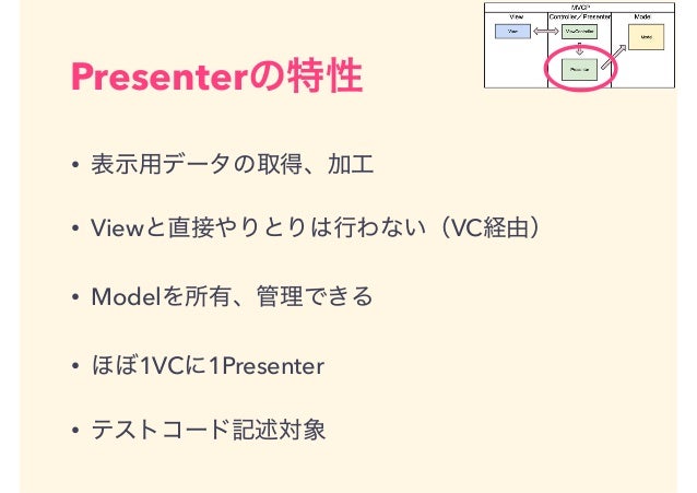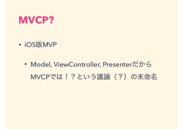 iOS向けのMVPであるMVCPモデルについてご紹介します。