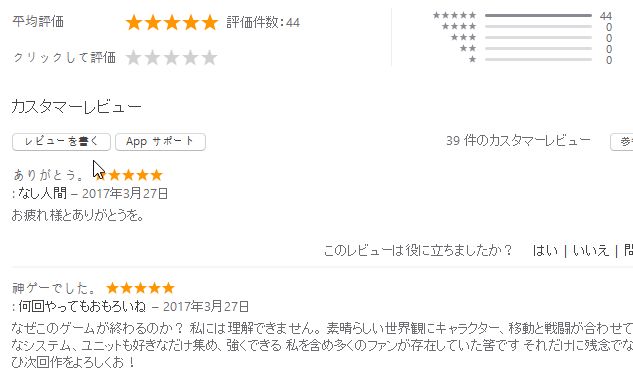 現在、まさかのラストクエストと展開に盛り上がったプレイヤー達がレビューを投稿しはじめ、App Storeのレビュー欄はサービス終了手前なのに平均評価★5となっている。