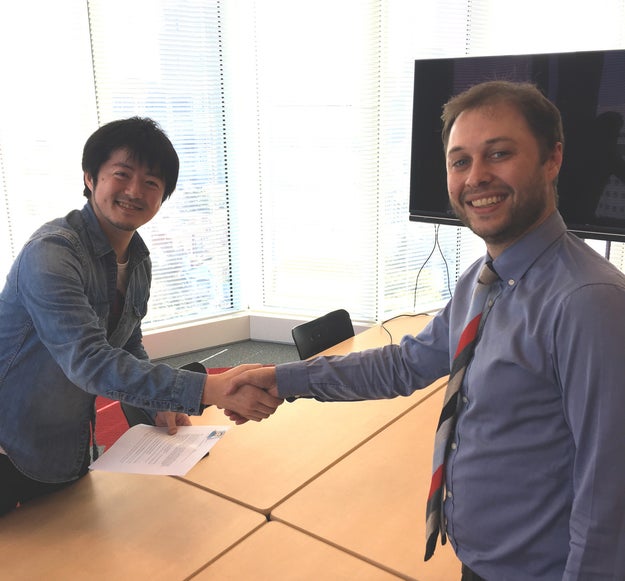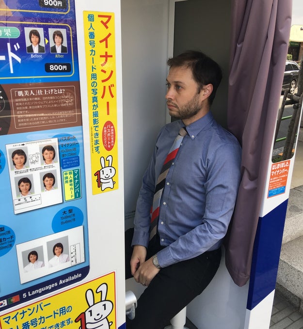 BuzzFeed Japanのオフィスのすぐそばに、証明写真が撮れる場所を発見。早速撮影するジャック。