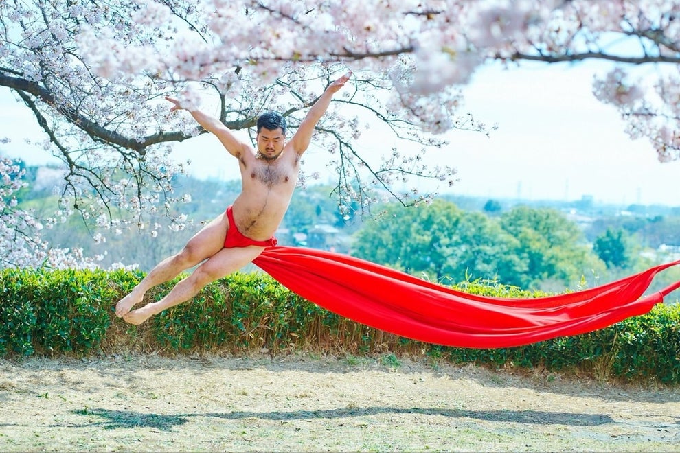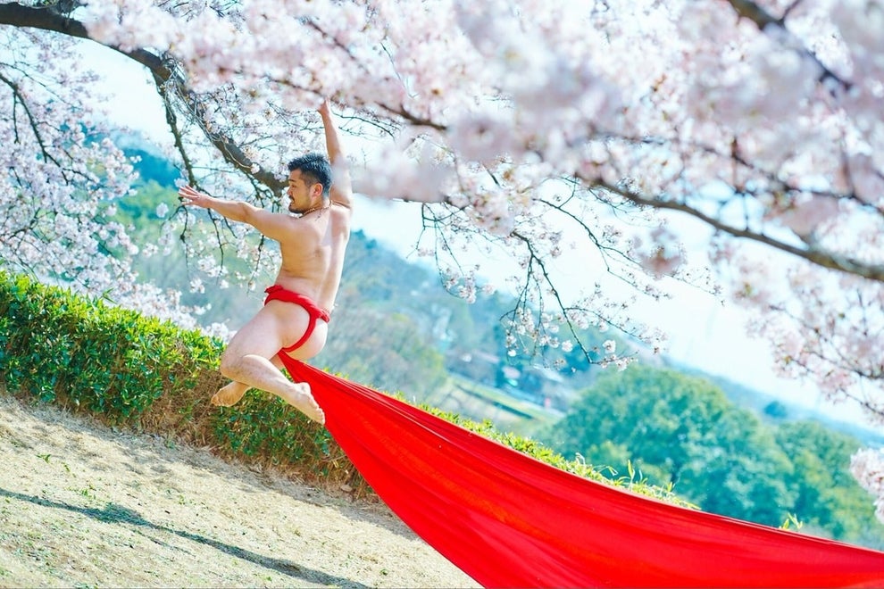 桜の中で見事なふんどし姿を披露しているのは、ダンスパフォーマーの五十嵐結也さん(@igachan999)。BuzzFeed Newsの取材に答える。