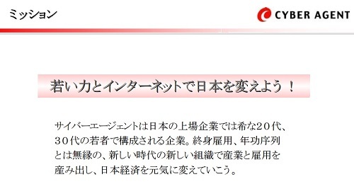 2000年の決算説明資料にはビジョンが見当たらないので、このこの頃にビジョンを策定したと思われます。また当時のサイバーエージェントさんのミッションも公開していたようです。