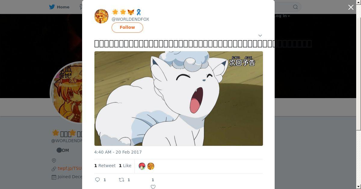 取得元URL: https://twitter.com:443/WORLDENDFOX/status/833657604580585472