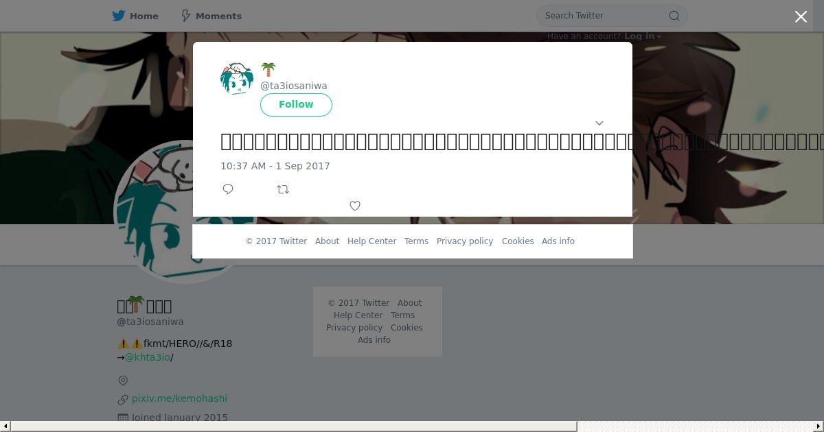 取得元URL: https://twitter.com:443/ta3iosaniwa/status/903673151703228416
