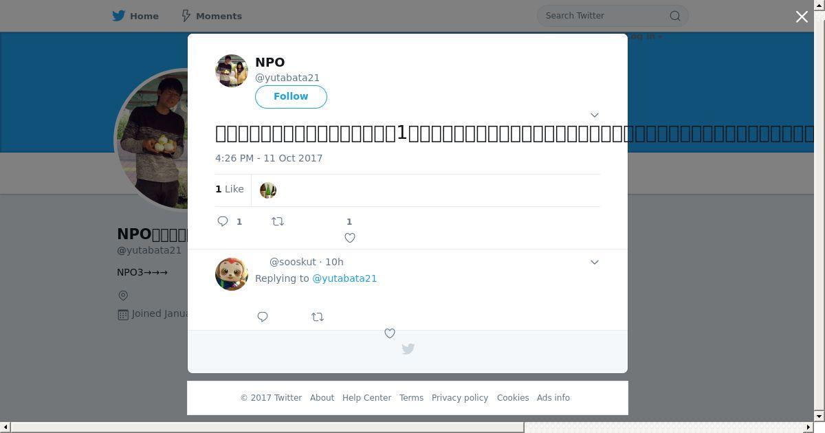 取得元URL: https://twitter.com:443/yutabata21/status/918256587038384128