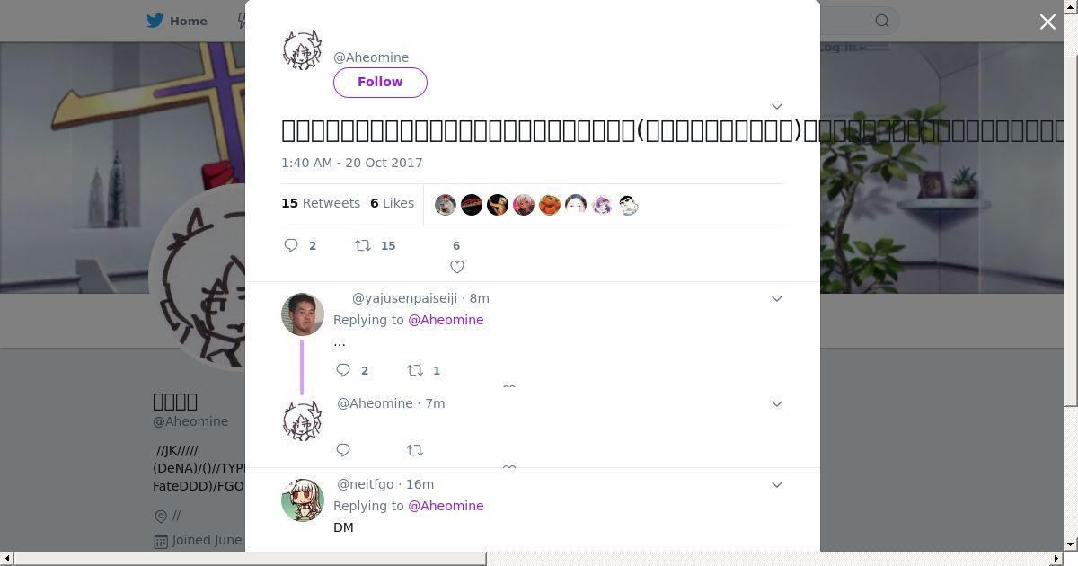 取得元URL: https://twitter.com:443/Aheomine/status/921294924040904704