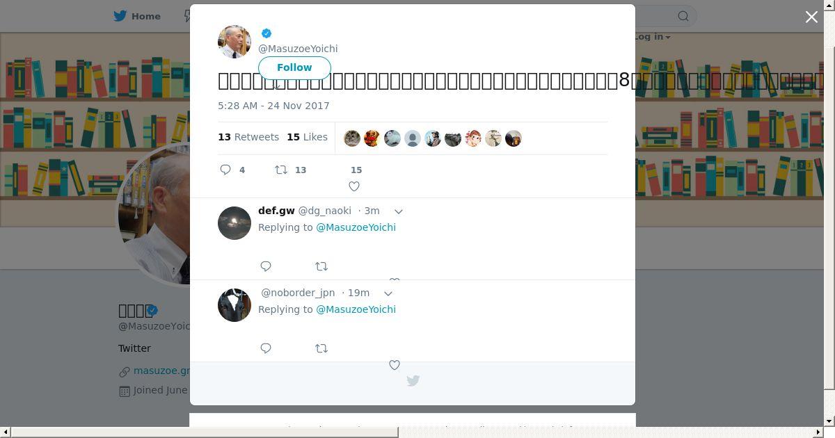 https://twitter.com:443/MasuzoeYoichi/status/934051056622776320
