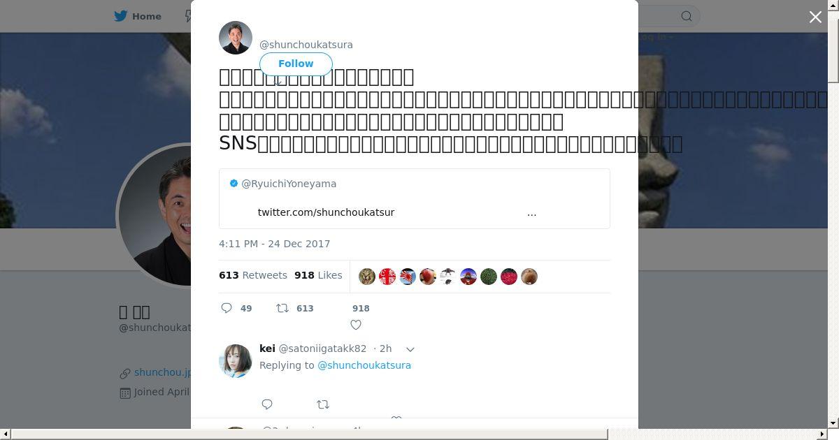 https://twitter.com:443/shunchoukatsura/status/945084463540723712