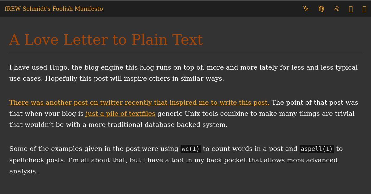 https://blog.afoolishmanifesto.com:443/posts/a-love-letter-to-plain-text/