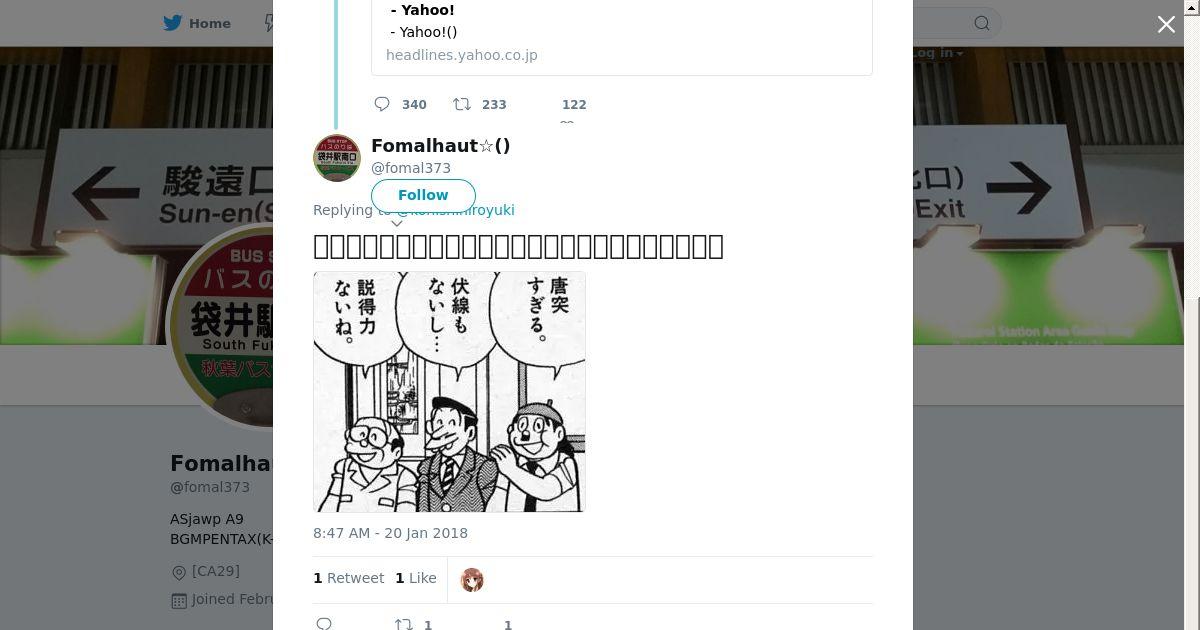 取得元URL: https://twitter.com:443/fomal373/status/954757209841311746