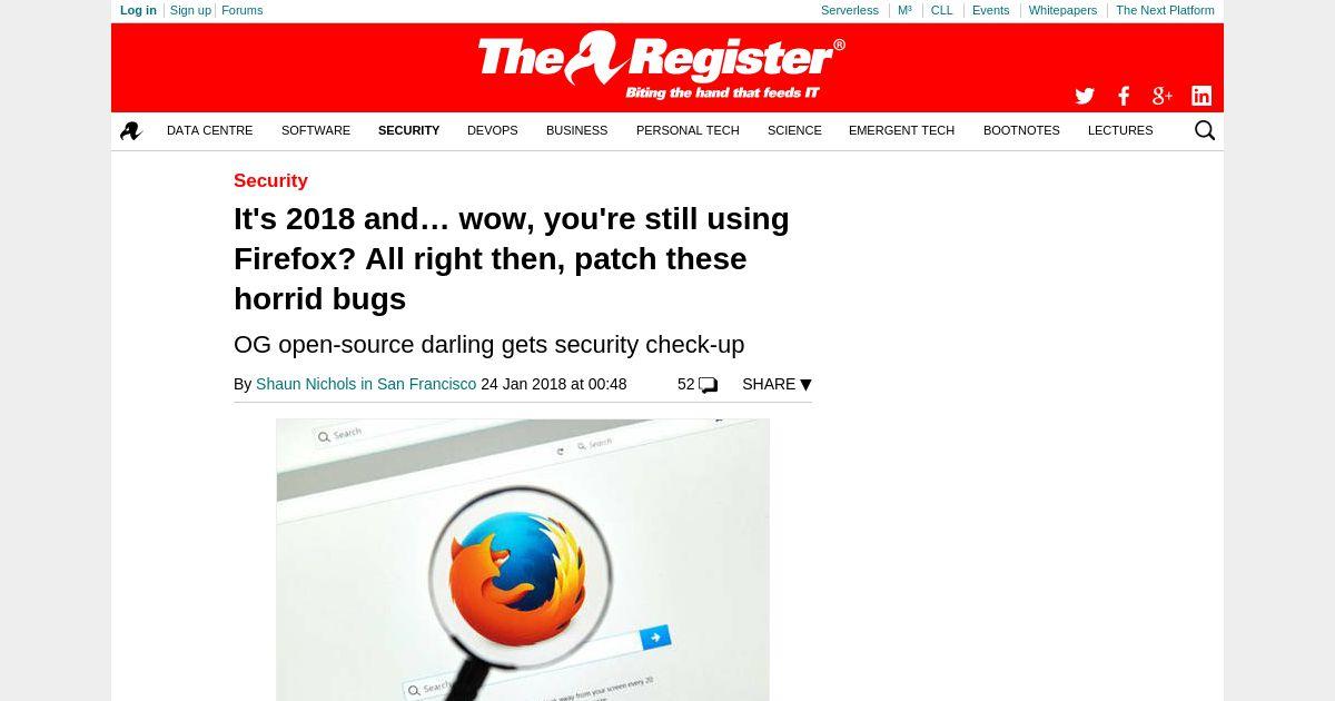 取得元URL: https://www.theregister.co.uk:443/2018/01/24/mozilla_firefox_security_updates/
