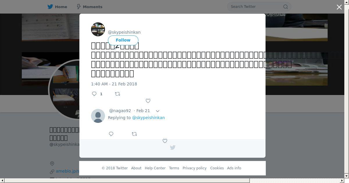 取得元URL: https://twitter.com:443/skypeishinkan/status/966246334142472192