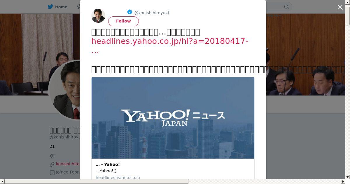 取得元URL: https://twitter.com:443/konishihiroyuki/status/986203448839307265