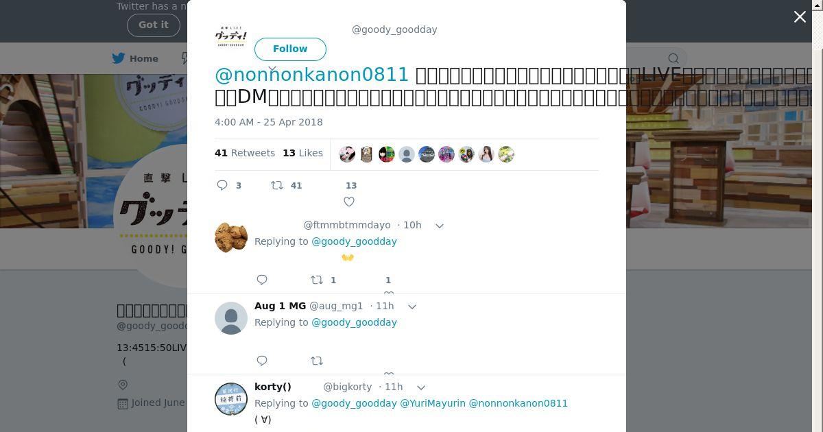 取得元URL: https://twitter.com:443/goody_goodday/status/989096870239596544