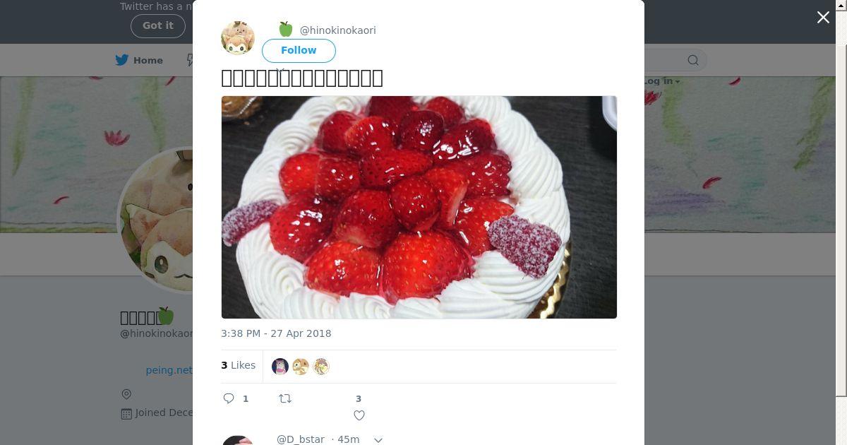 取得元URL: https://twitter.com:443/hinokinokaori/status/989997167778541568