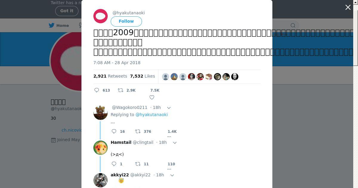 取得元URL: https://twitter.com:443/hyakutanaoki/status/990231223162159110