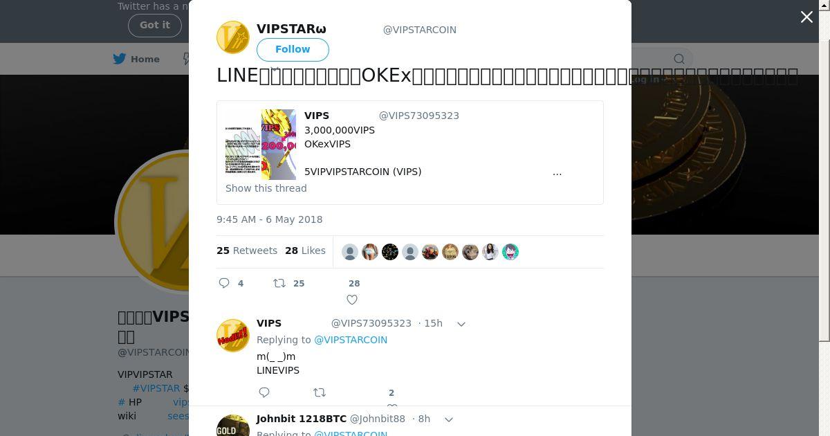 取得元URL: https://twitter.com:443/VIPSTARCOIN/status/993169783074967552