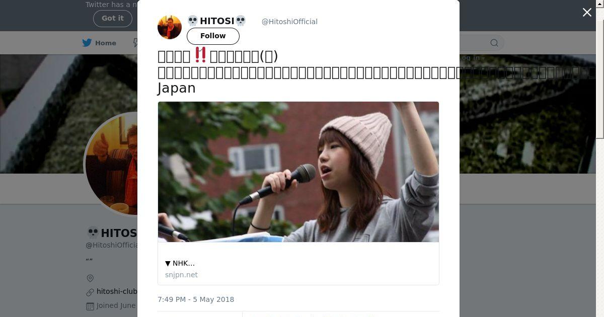 取得元URL: https://twitter.com:443/HitoshiOfficial/status/992959590714126336