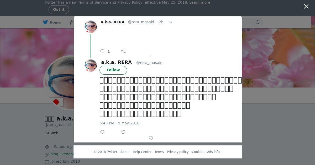取得元URL: https://twitter.com:443/rera_masaki/status/994377399537098752