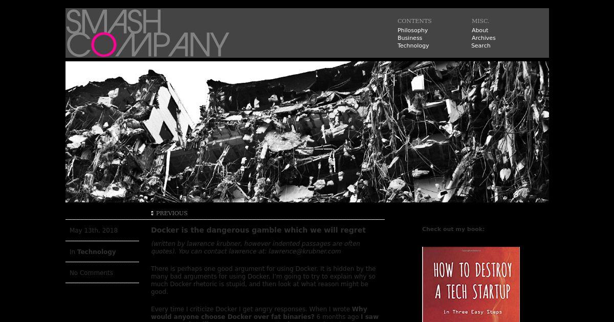http://www.smashcompany.com/technology/docker-is-a-dangerous-gamble-which-we-will-regret