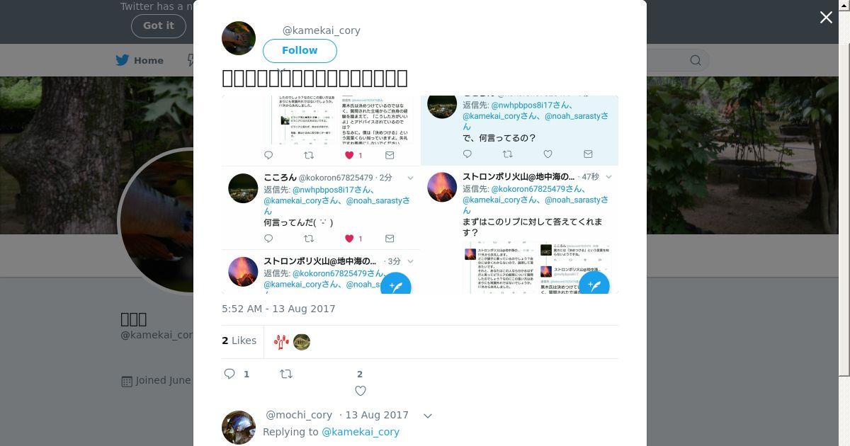 取得元URL: https://twitter.com:443/kamekai_cory/status/896716036954669058