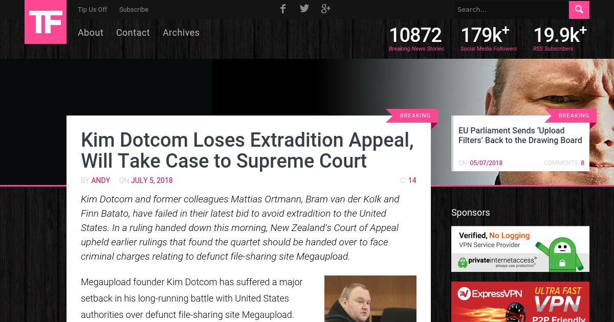 https://torrentfreak.com:443/kim-dotcom-loses-extradition-appeal-will-take-case-to-supreme-court-180705/