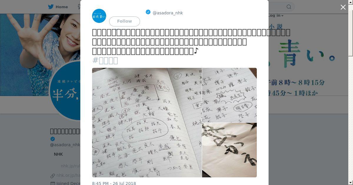 https://twitter.com:443/asadora_nhk/status/1022689318211645442