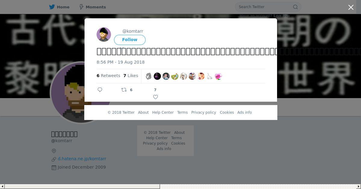 取得元URL: https://twitter.com:443/komtarr/status/1031389447453986817
