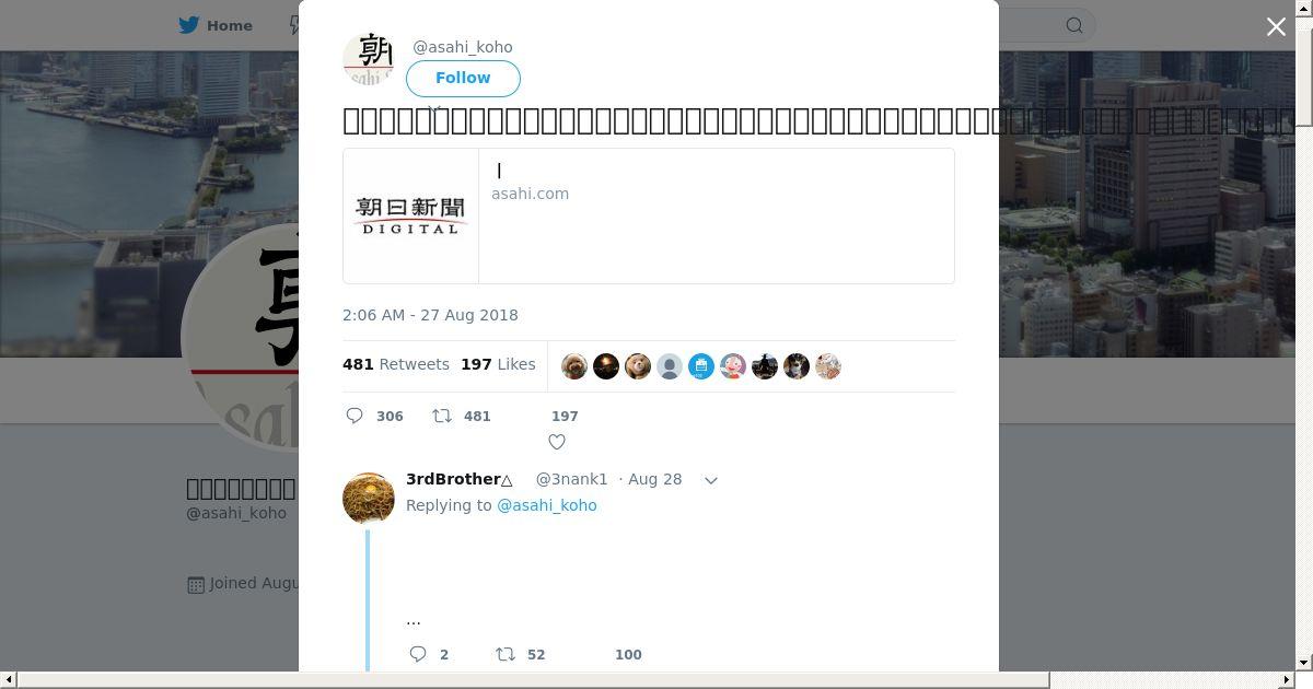 https://twitter.com:443/asahi_koho/status/1034004175246381056