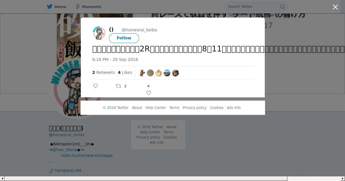 https://twitter.com:443/hanwarai_keiba/status/1046207739456712705