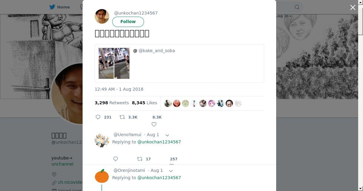 取得元URL: https://twitter.com:443/unkochan1234567/status/1024562673181122560
