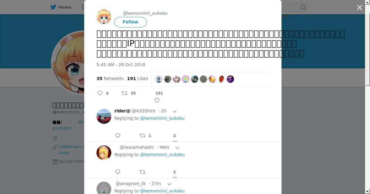取得元URL: https://twitter.com:443/kemomimi_oukoku/status/1056527396365463552