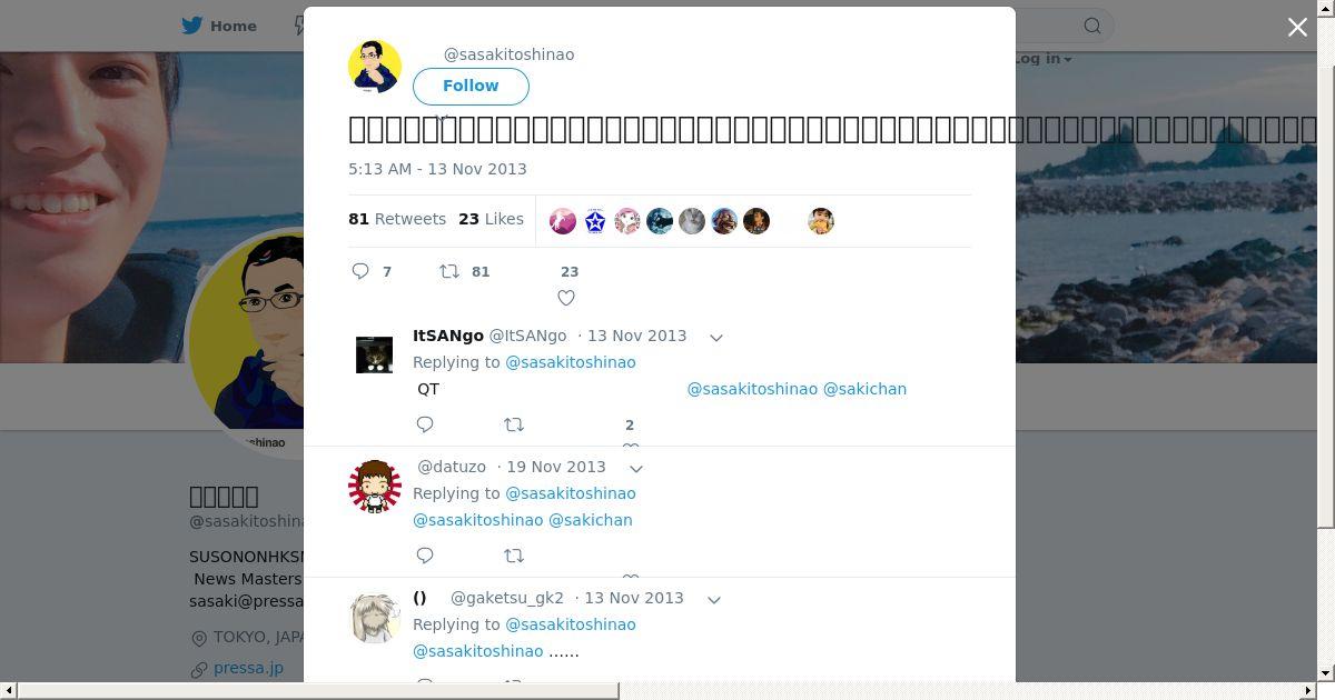 取得元URL: https://twitter.com:443/sasakitoshinao/status/400612304397426688