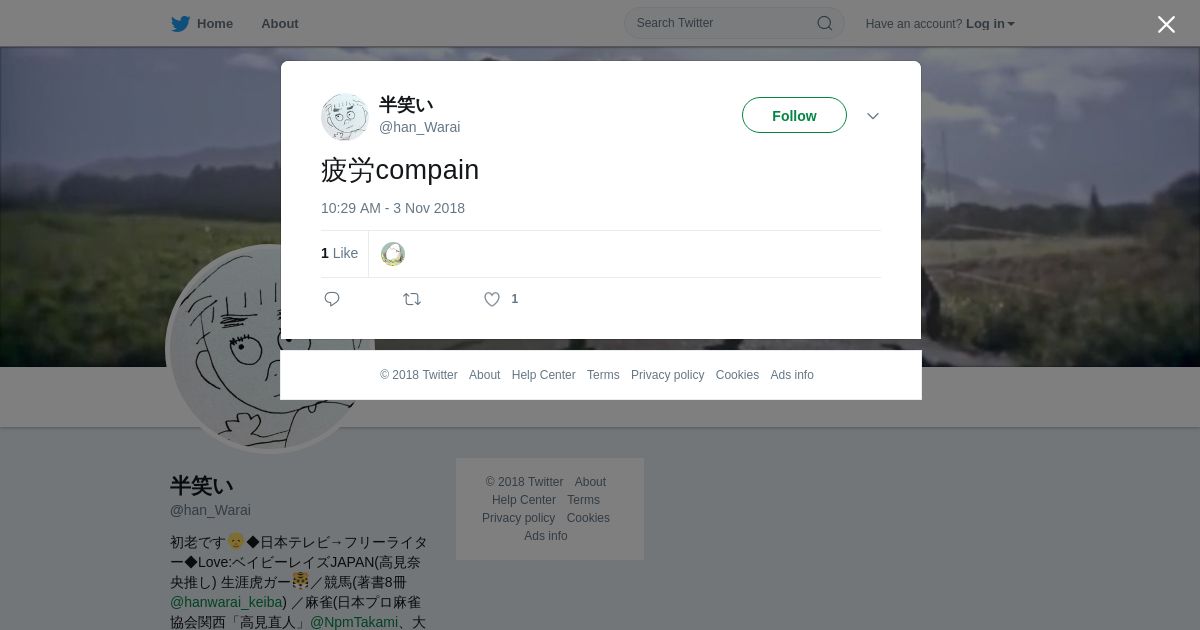 取得元URL: https://twitter.com:443/han_Warai/status/1058773062592606208