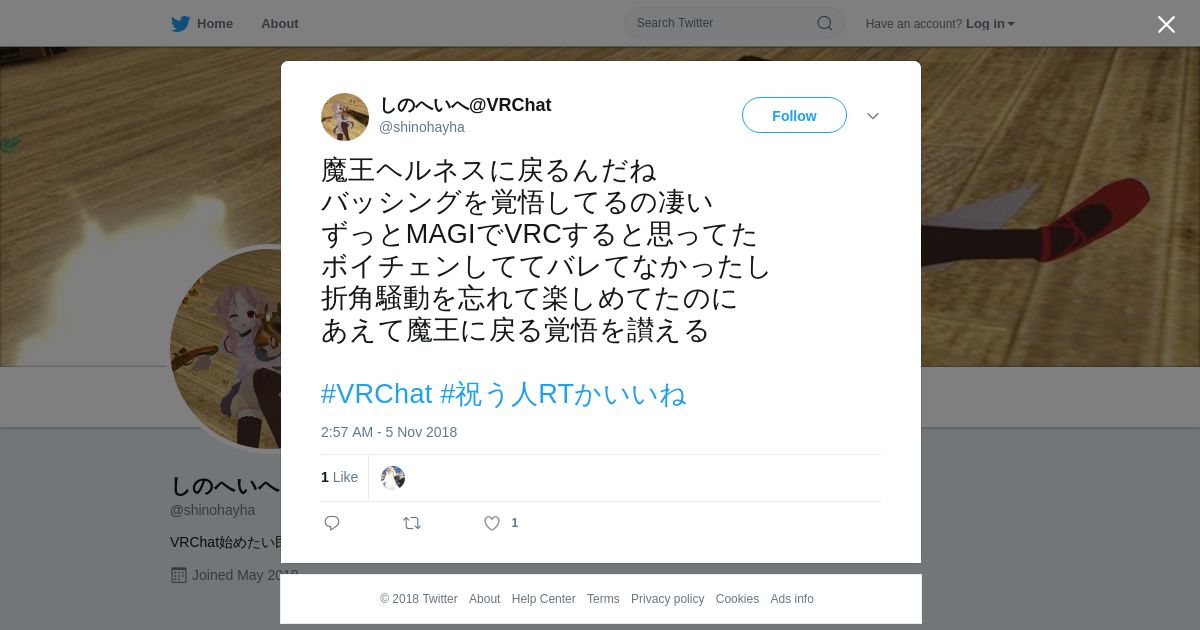取得元URL: https://twitter.com:443/shinohayha/status/1059399386197745664