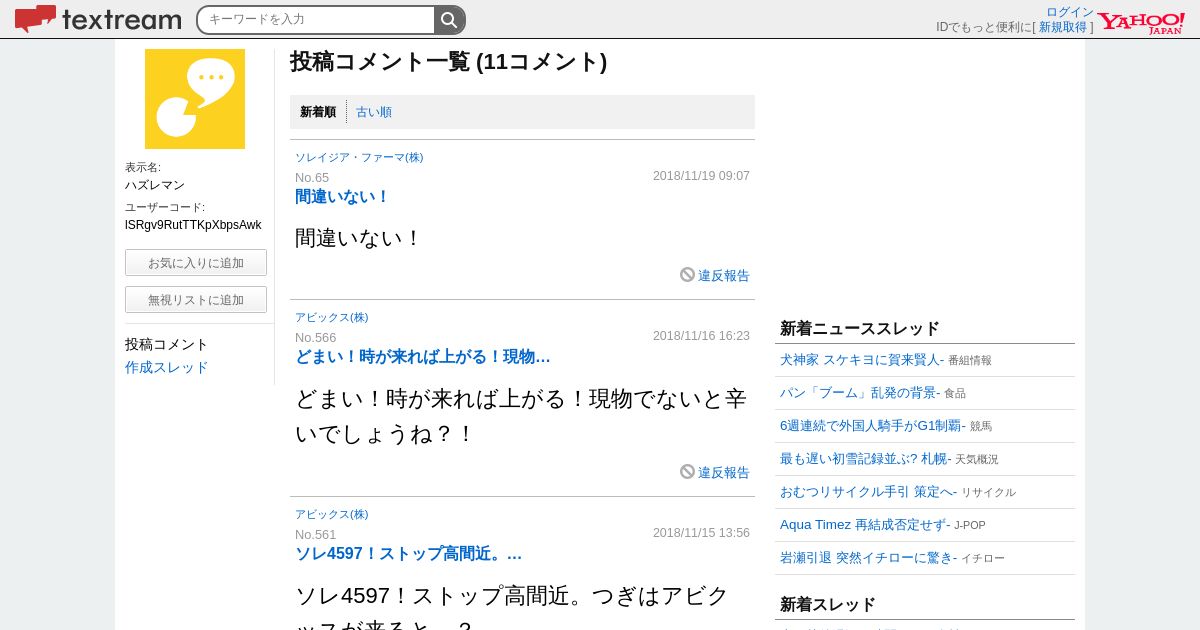 https://textream.yahoo.co.jp:443/personal/history/comment?user=lSRgv9RutTTKpXbpsAwk