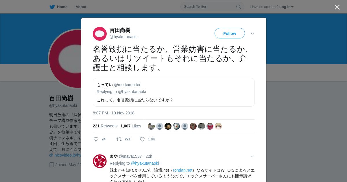 取得元URL: https://twitter.com:443/hyakutanaoki/status/1064731937309253632