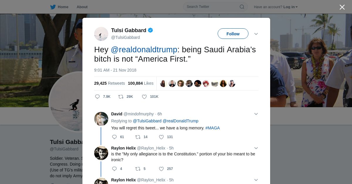 https://twitter.com:443/TulsiGabbard/status/1065289231977738240