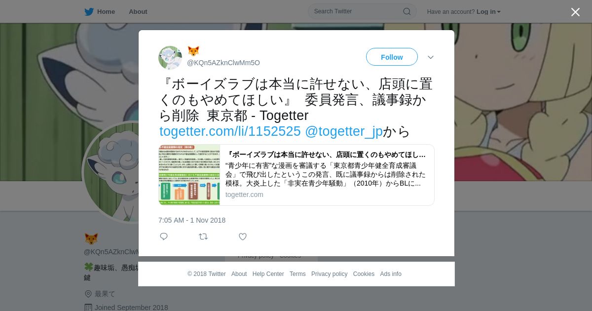 取得元URL: https://twitter.com:443/KQn5AZknClwMm5O/status/1057997125575798786