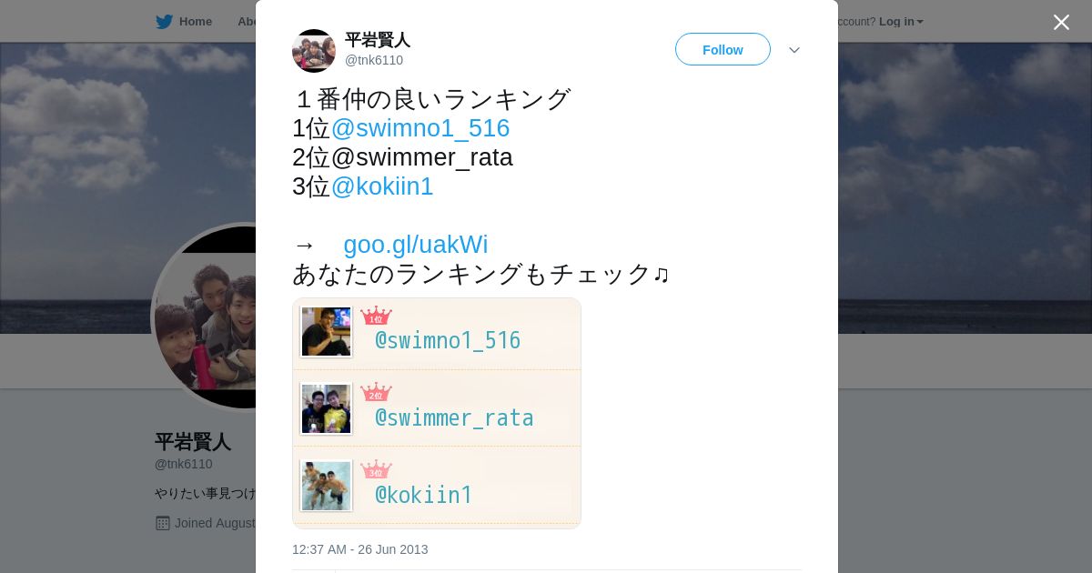 取得元URL: https://twitter.com:443/tnk6110/status/349793491548774400