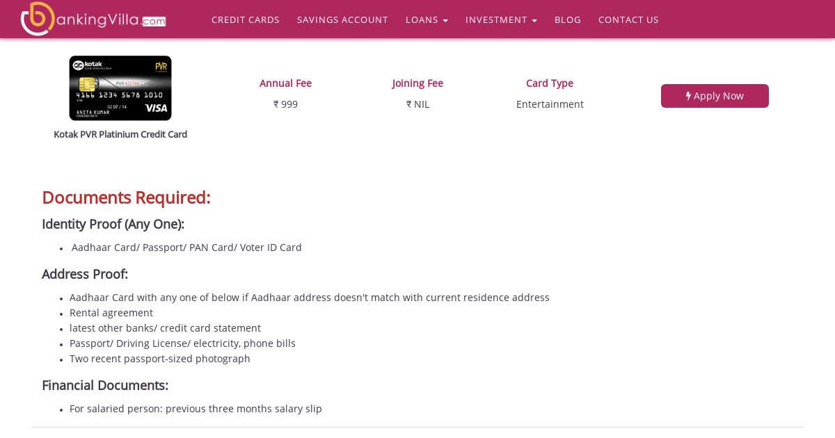 https://www.bankingvilla.com:443/Credit-Card/kotak-pvr-platinium-credit-card.php