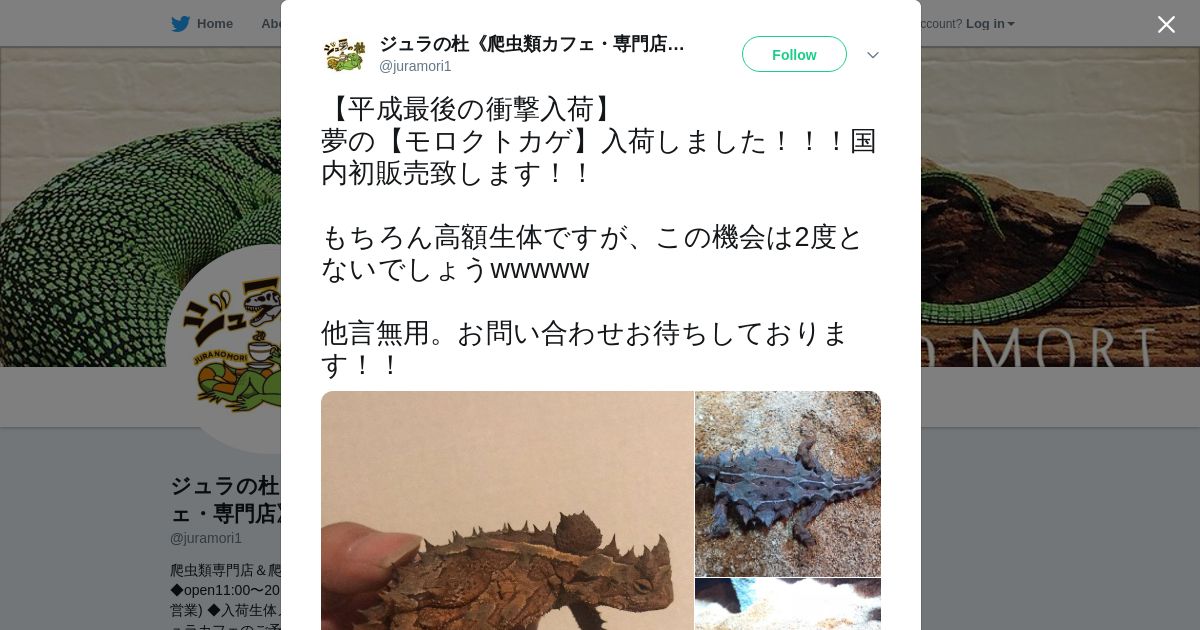 取得元URL: https://twitter.com:443/juramori1/status/1077060071274606592