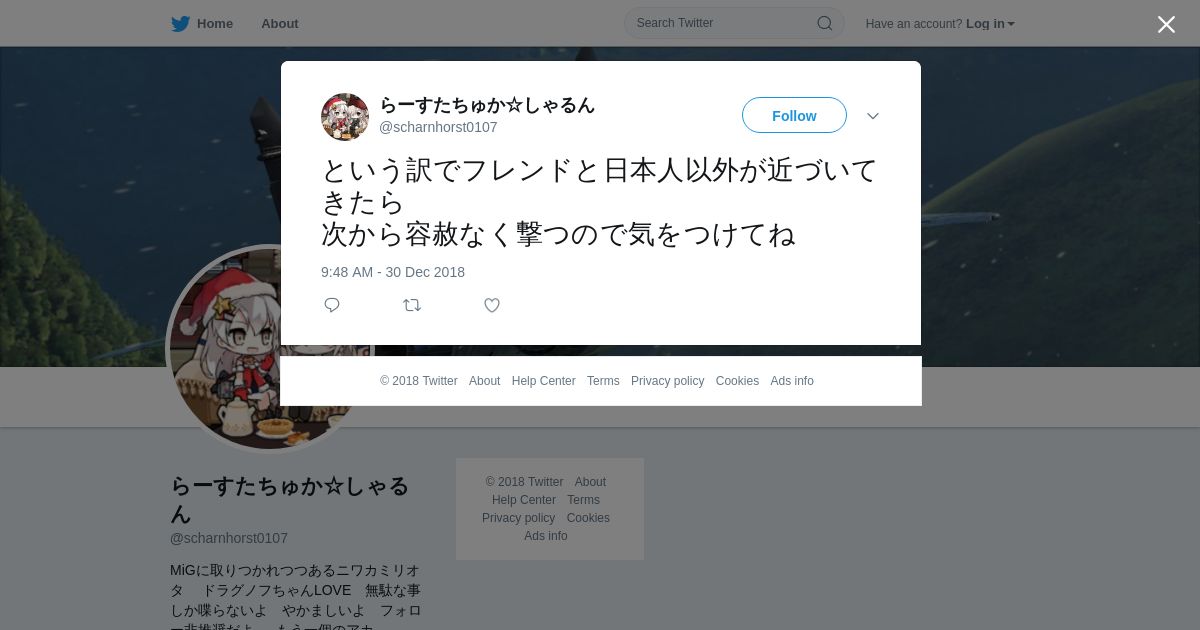 取得元URL: https://twitter.com:443/scharnhorst0107/status/1079433993416658944