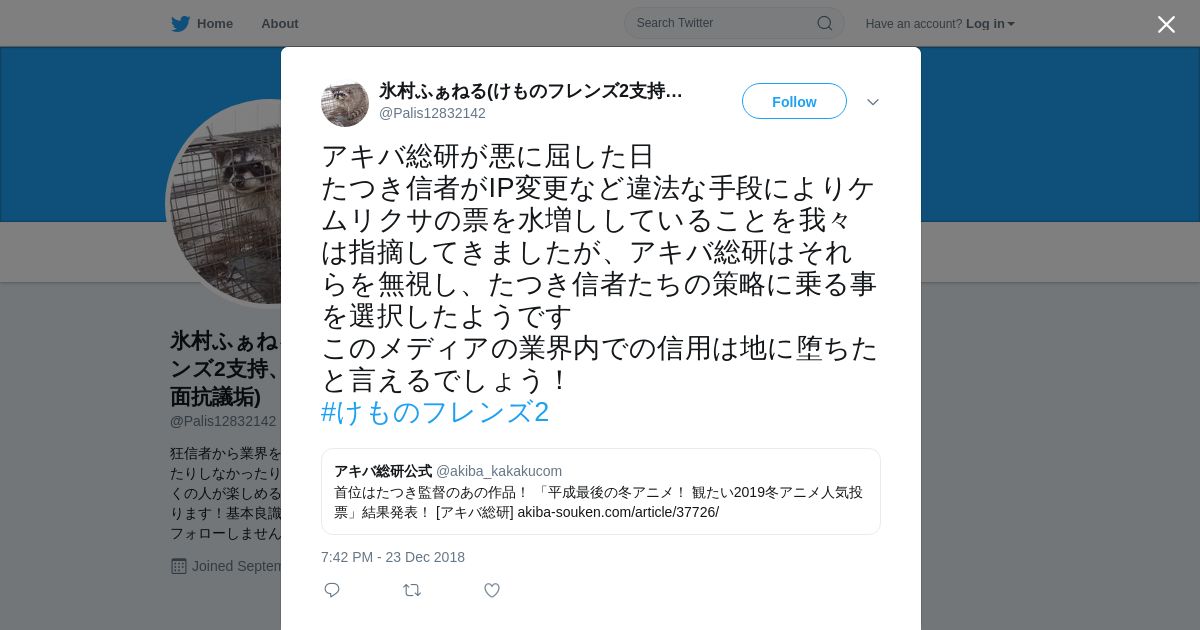 取得元URL: https://twitter.com:443/Palis12832142/status/1077046718540144642