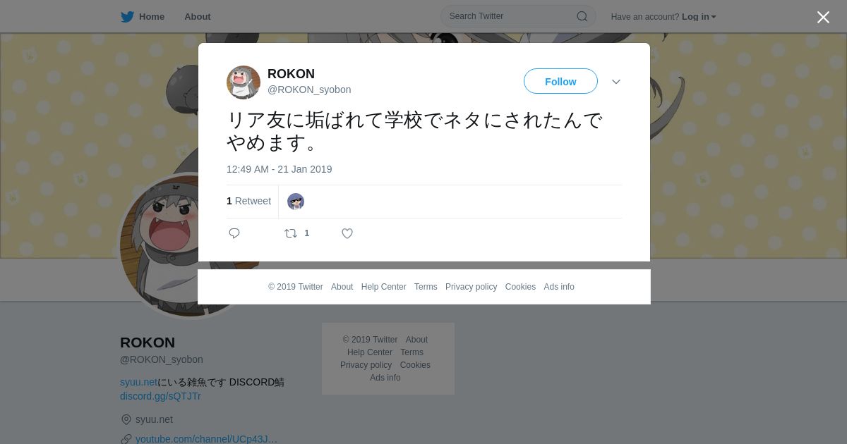 https://twitter.com:443/ROKON_syobon/status/1087271005460942848