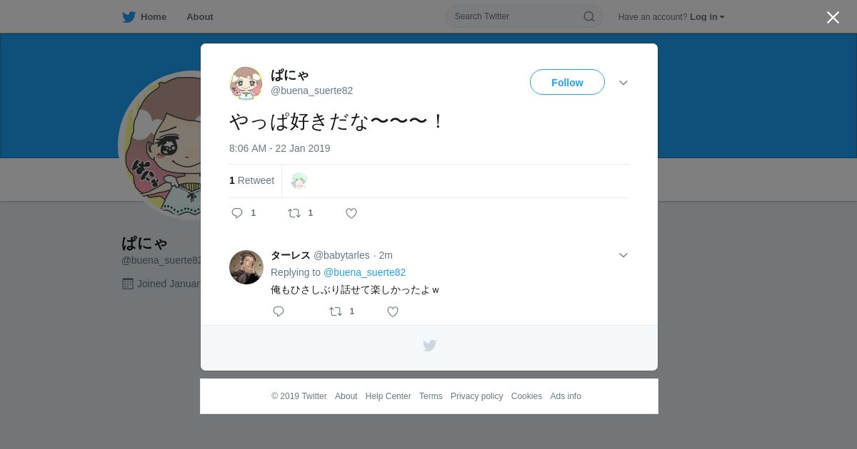 取得元URL: https://twitter.com:443/buena_suerte82/status/1087743255347814407