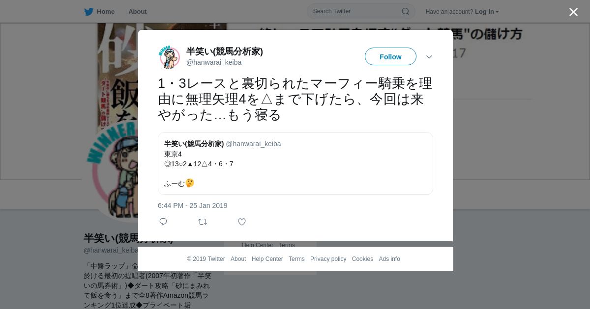 https://twitter.com:443/hanwarai_keiba/status/1088990986691198977