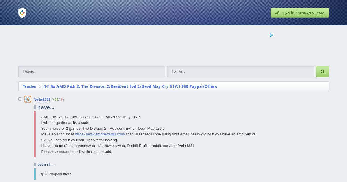 https://www.steamtrades.com:443/trade/5H3c0/h-5x-amd-pick-2-the-division-2resident-evil-2devil-may-cry-5-w-50-paypaloffers