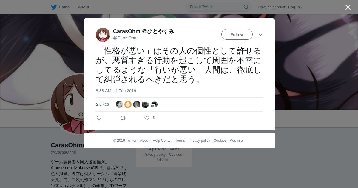 取得元URL: https://twitter.com:443/CarasOhmi/status/1091375338746073089