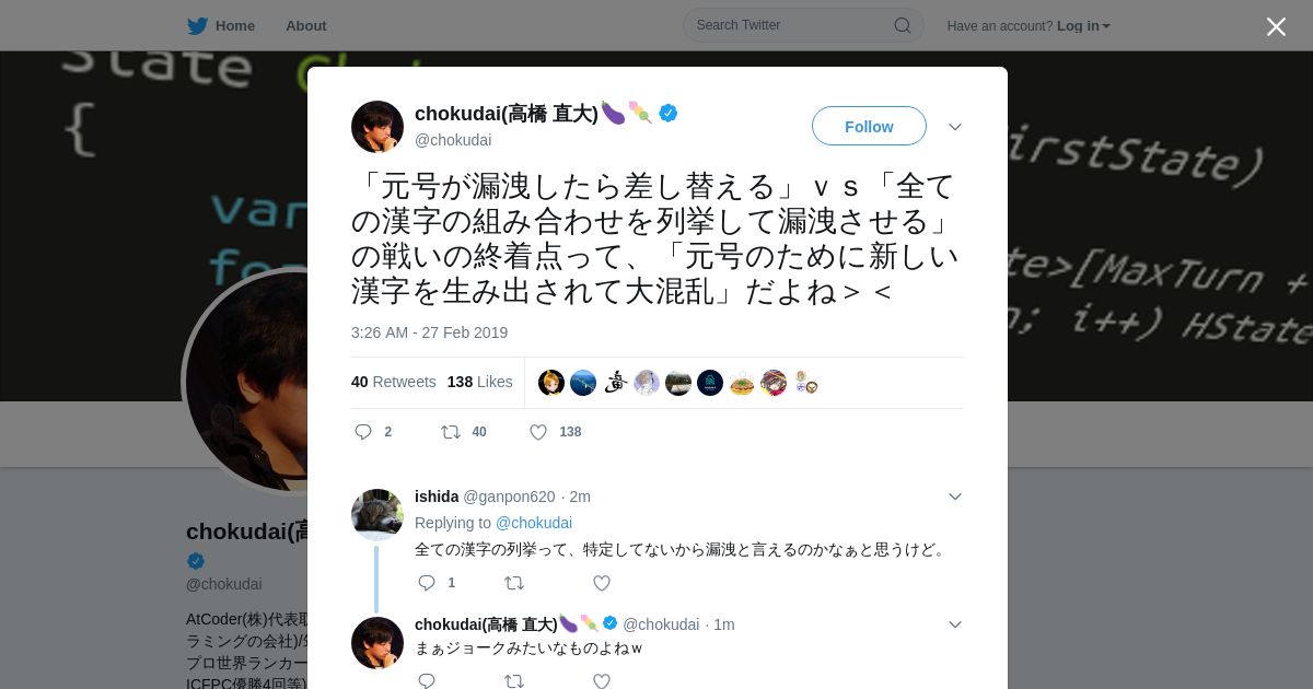 https://twitter.com:443/chokudai/status/1100718803212619777